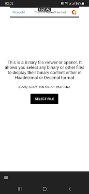 You can now use our bin file opener app to open all types of bin files. You can select any bin file from your phone and display the binary codes in either decimal or hexadecimal format.