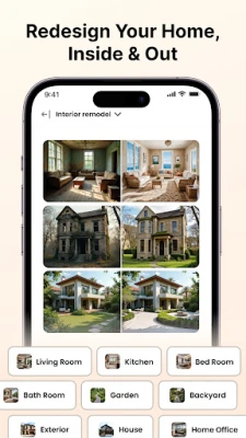 - Interior Remodel: Easily renovate bedrooms, living rooms, kitchens, bathrooms, and other interior spaces with the power of AI interior design.