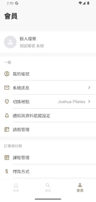 首頁:一目了然的介面讓您即時查看近期的預約課程,並隨時查看場館發佈的重要消息。